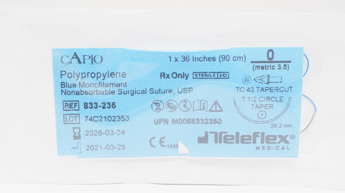 - Teleflex 833-235 Polypropylene 0 Blue Monofilament TC 43 Tapercut