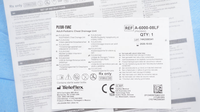 - Teleflex A-6000-08LF Pleur-Evac Adult Pediatric Chest Drainage Unit
