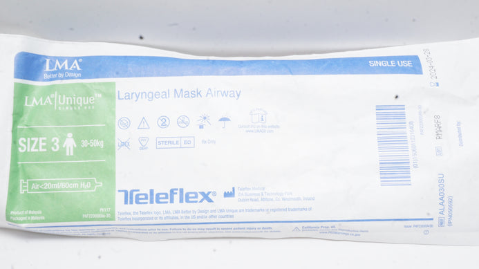 - Teleflex ALAA030SU LMA Unique Laryngeal Mask Airway Size 3 30-50kg (x)