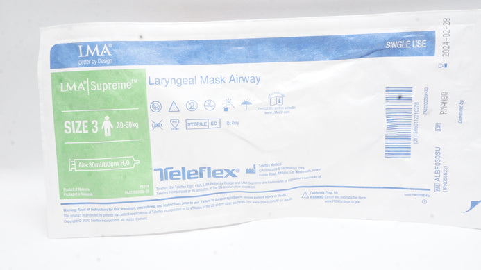 - Teleflex ALBF030SU LMA Laryngeal Mask Airway, Size 3 30-50kg, <30ml/60cm H2O