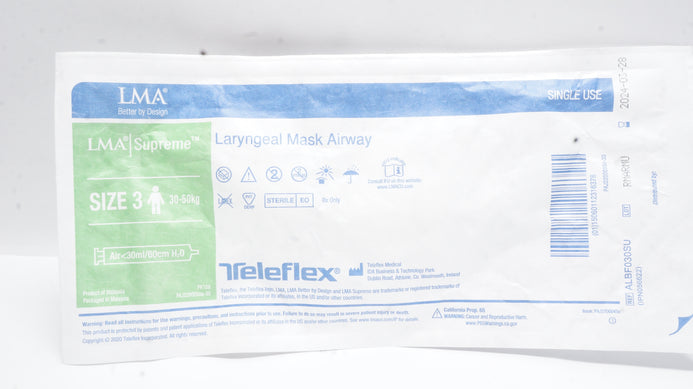 - Teleflex ALBF030SU LMA Laryngeal Mask Airway, Size 3 30-50kg, <30ml/60cm H2O(x)