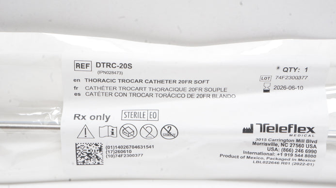 - Teleflex DTRC-20S Thoracic Trocar Cath. Soft 20Fr