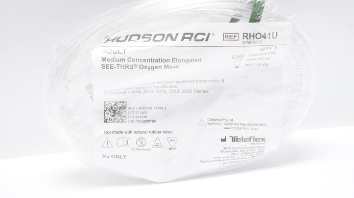 - Teleflex RHO41U Hudson RCI See-Thru Oxygen Mask, Medium Concentration, Elongated