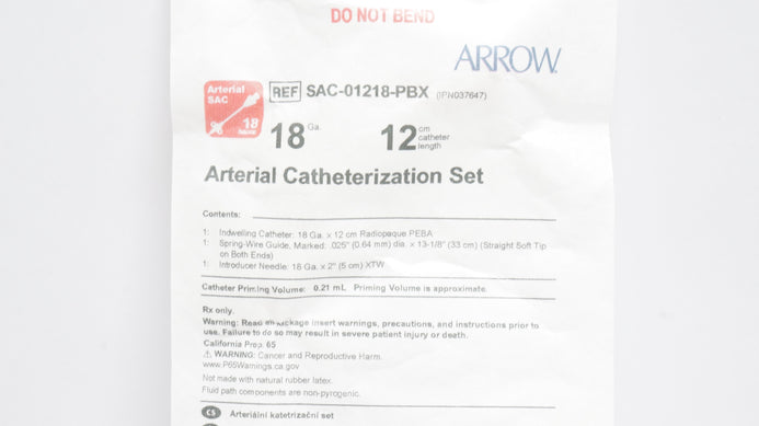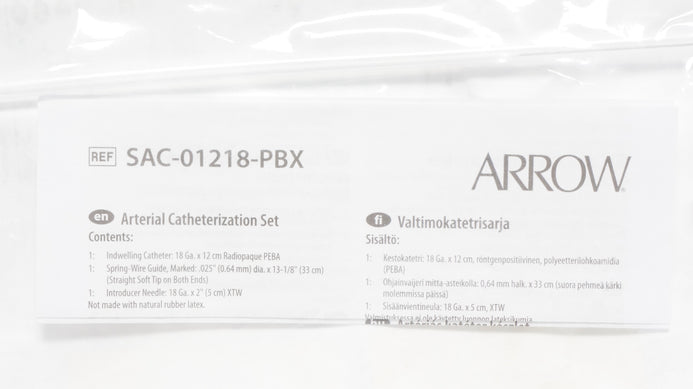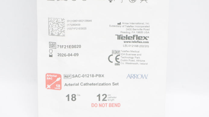 - Teleflex SAC-01218-PBX Arrow Artherial Catheterization Set 18Ga x 12cm
