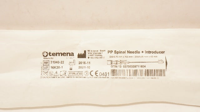 - Temena 31940-22 PP Spinal Ndle+Introducer 22G/0.70mmx 150mm/20G/0.95mmx 42mm (x)