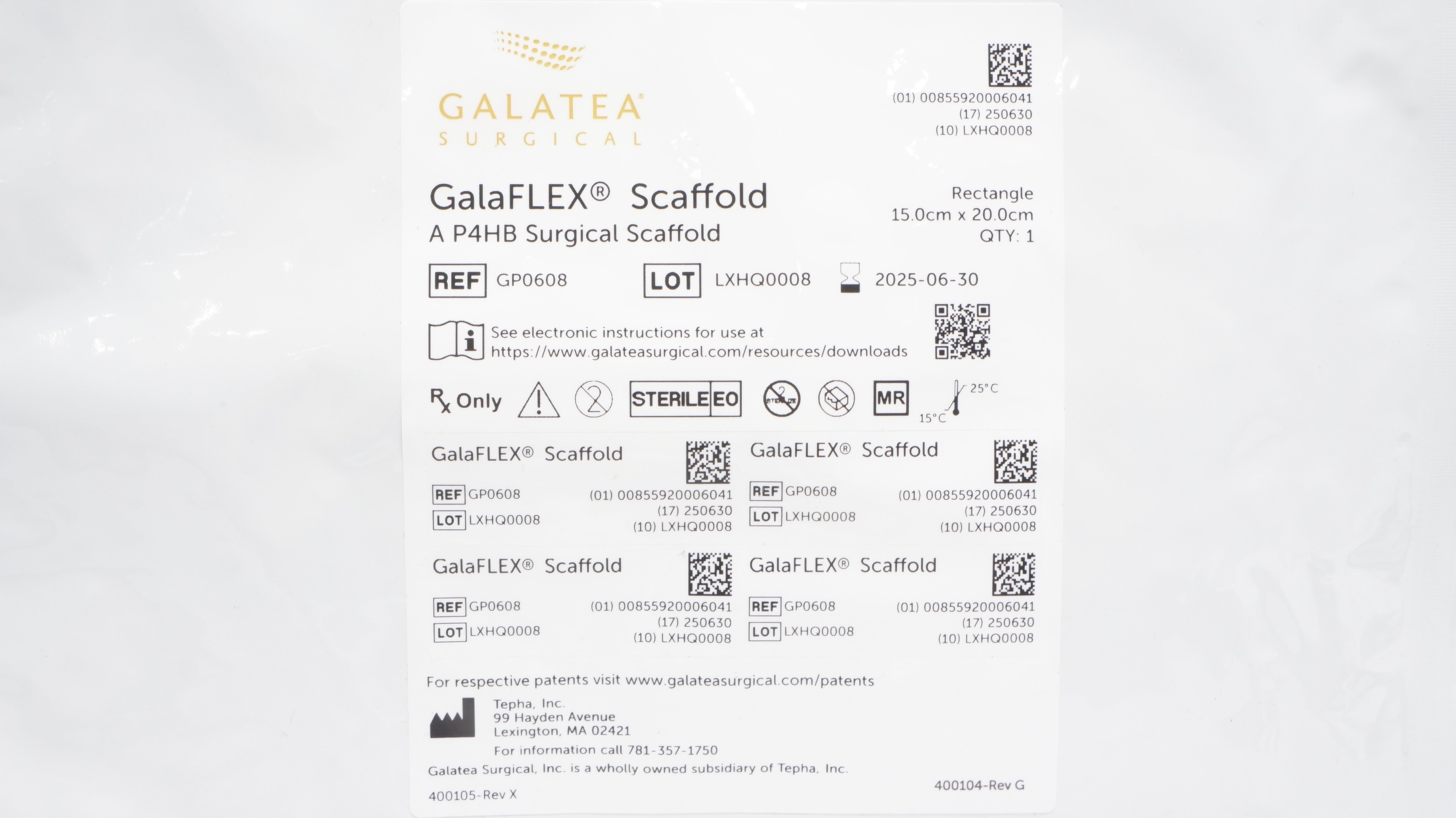 - Tepha GP0608 Galatea GalaFLEX Bioresorbable Surgical Scaffold 15.0cm x 20.0cm(x)