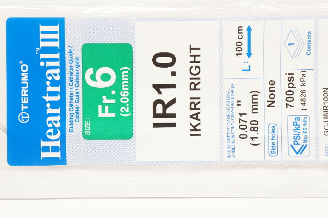 - Terumo 40-6380 Heartrail III Guiding Catheter 6Fr IR1.0 Ikari Right (x)