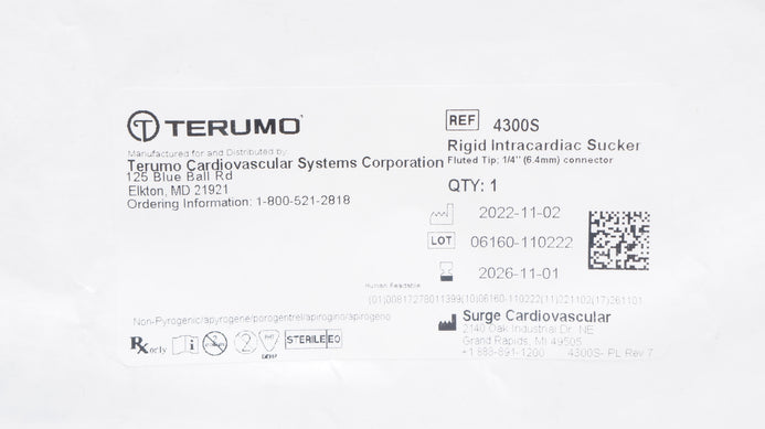 - Terumo 4300S Rigid Intracardiac Sucker Fluted Tip, 1/4inch