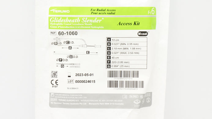 - Terumo 60-1060 Mcoat Glidesheath Slender Access Kit 6Fr (x)