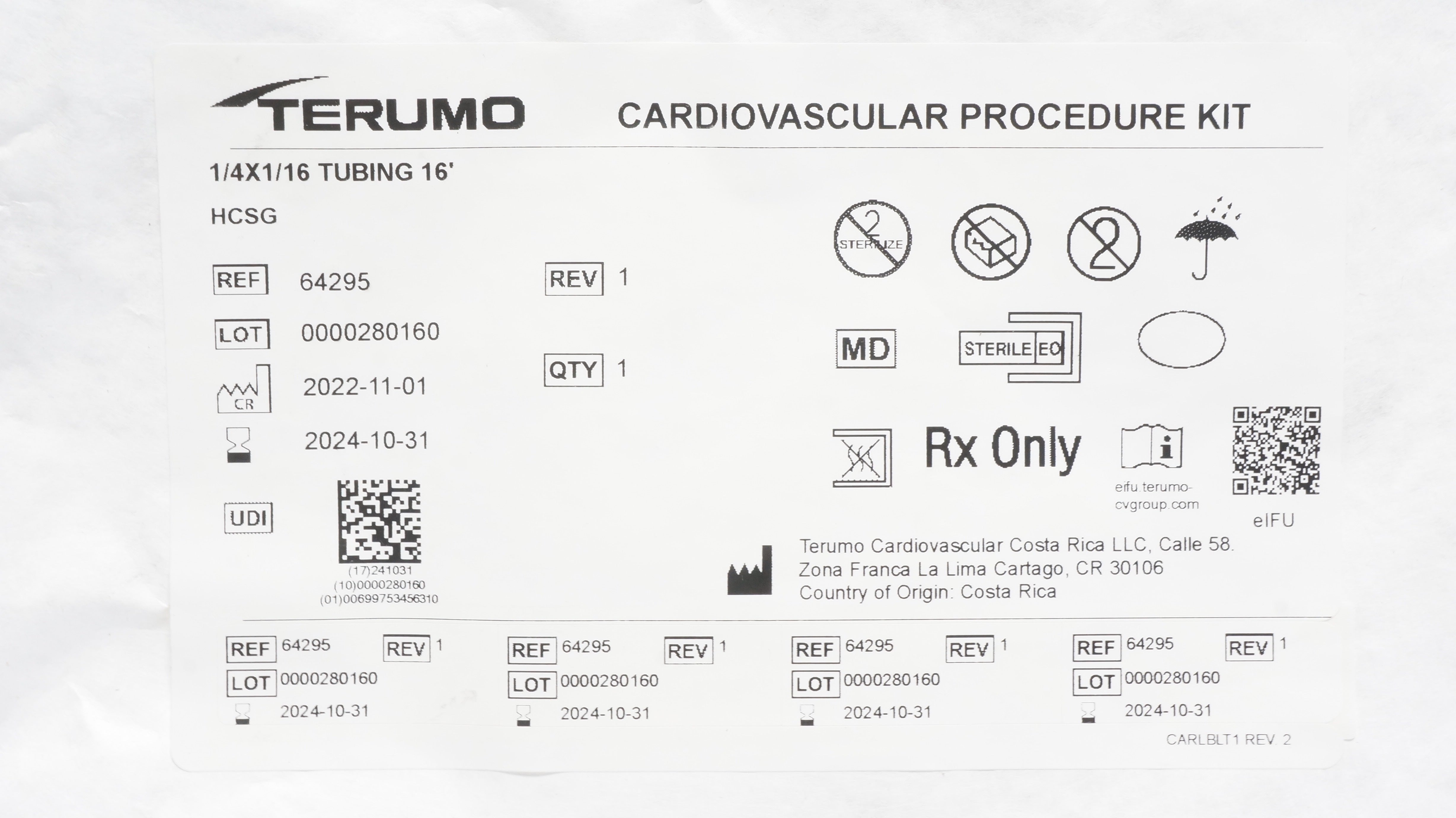 - Terumo 64295 Cardiovascular Procedure Kit 1/4x1/16 Tubing 16Ft (x)
