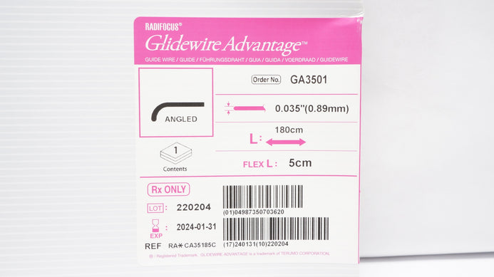 - Terumo GA3501 Radiofocus Glidewire Advantage Angled 0.035inch x 180cm (x)