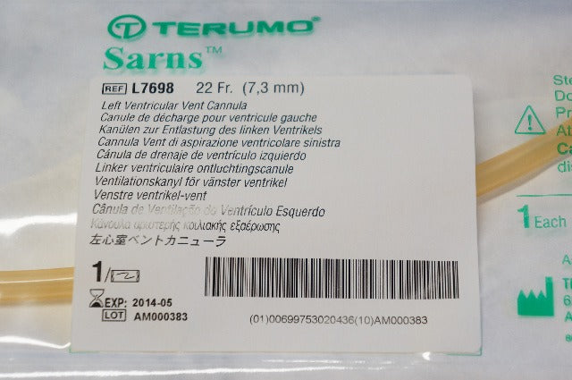 - Terumo L7698 Sarns Left Ventrical Vent Cannula 22Fr. ~ Pack of 10 (x)