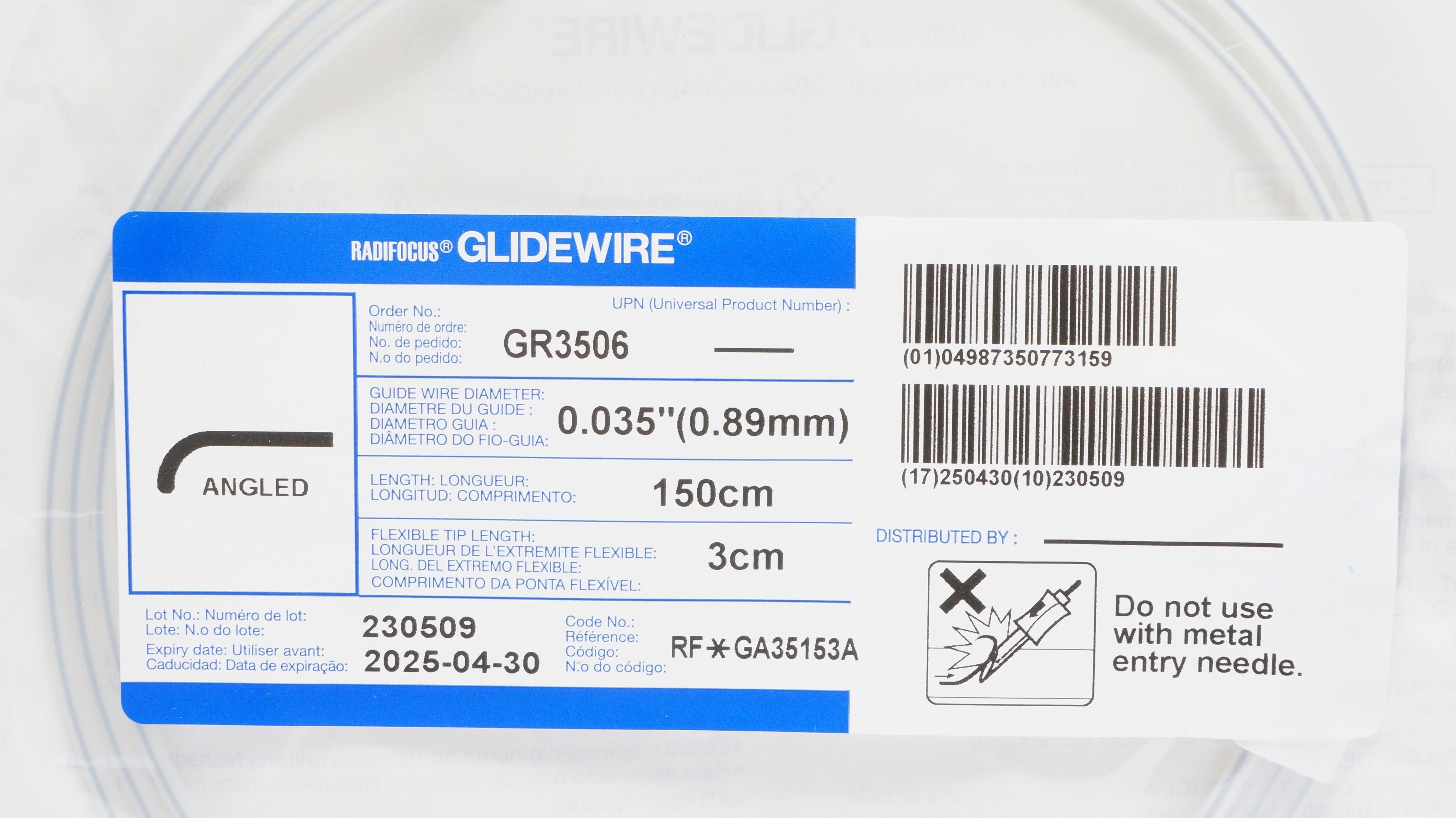 - Terumo RF*GA35153A Radifocus Glidewire, Angled 150cm x 0.035inch x 3cm (x)