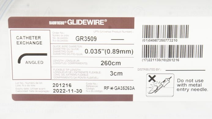 - Terumo RF*GA35263A Radifocus GlideWire Cath. Exchange 0.035inch x 260cm x 3cm(x)