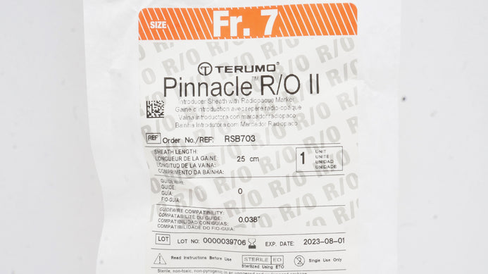 - Terumo RSB703 Pinnacle R/O II Introducer Sheath 7Fr x 0.038inch x 25cm (x)