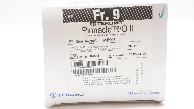 - Terumo RSB903 Pinnacle R/O II Introducer Sheath 9Fr x 25cm x 0.038in(x)-Box of10