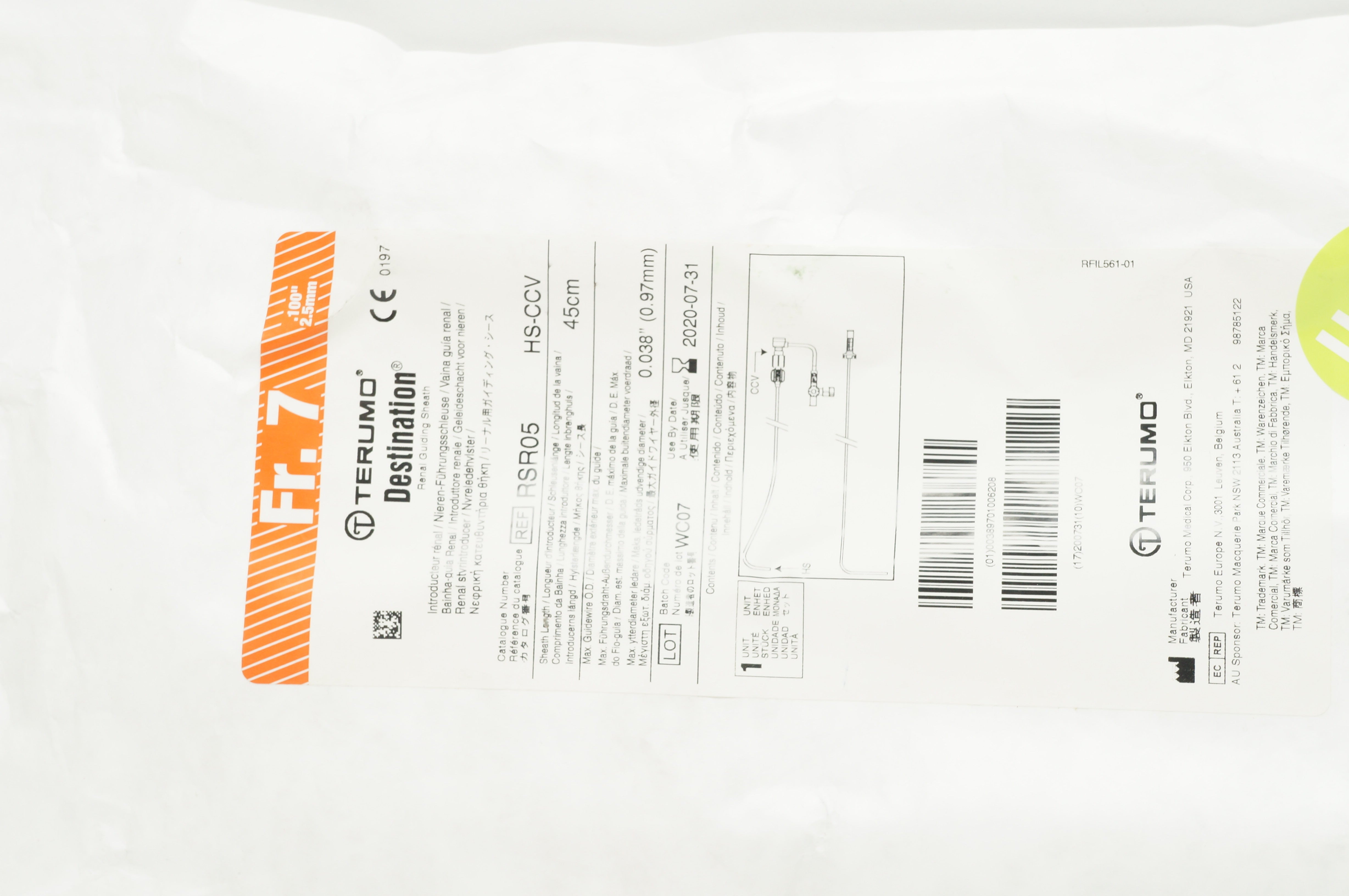 - Terumo RSR05 Destination Renal Guiding Sheath 7Fr x 45cm x 0.038inch (x)