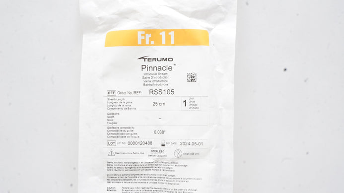 - Terumo RSS105 Pinnacle Introducer Sheath 11Fr 25cm x 0.038 inch (x)