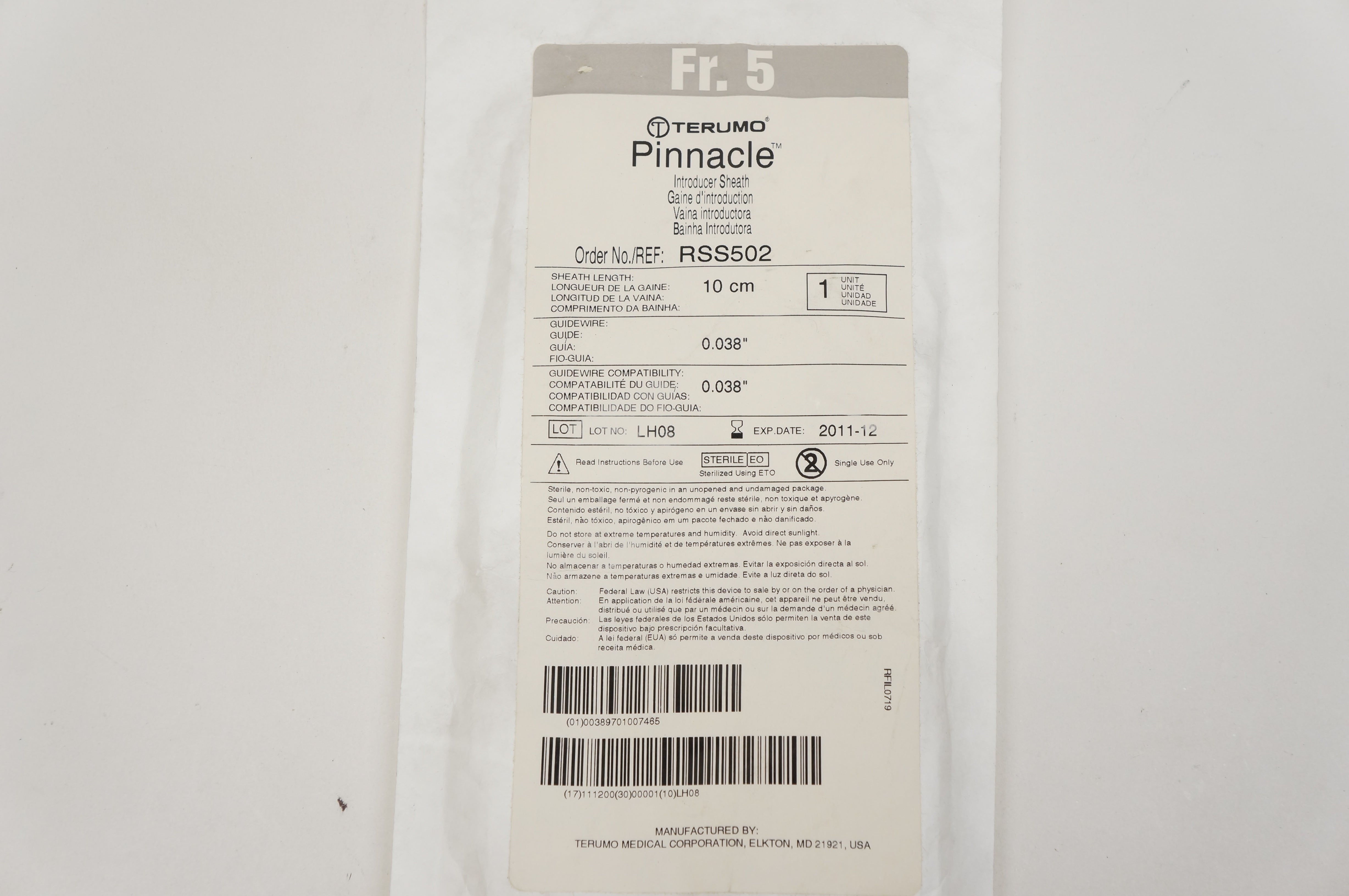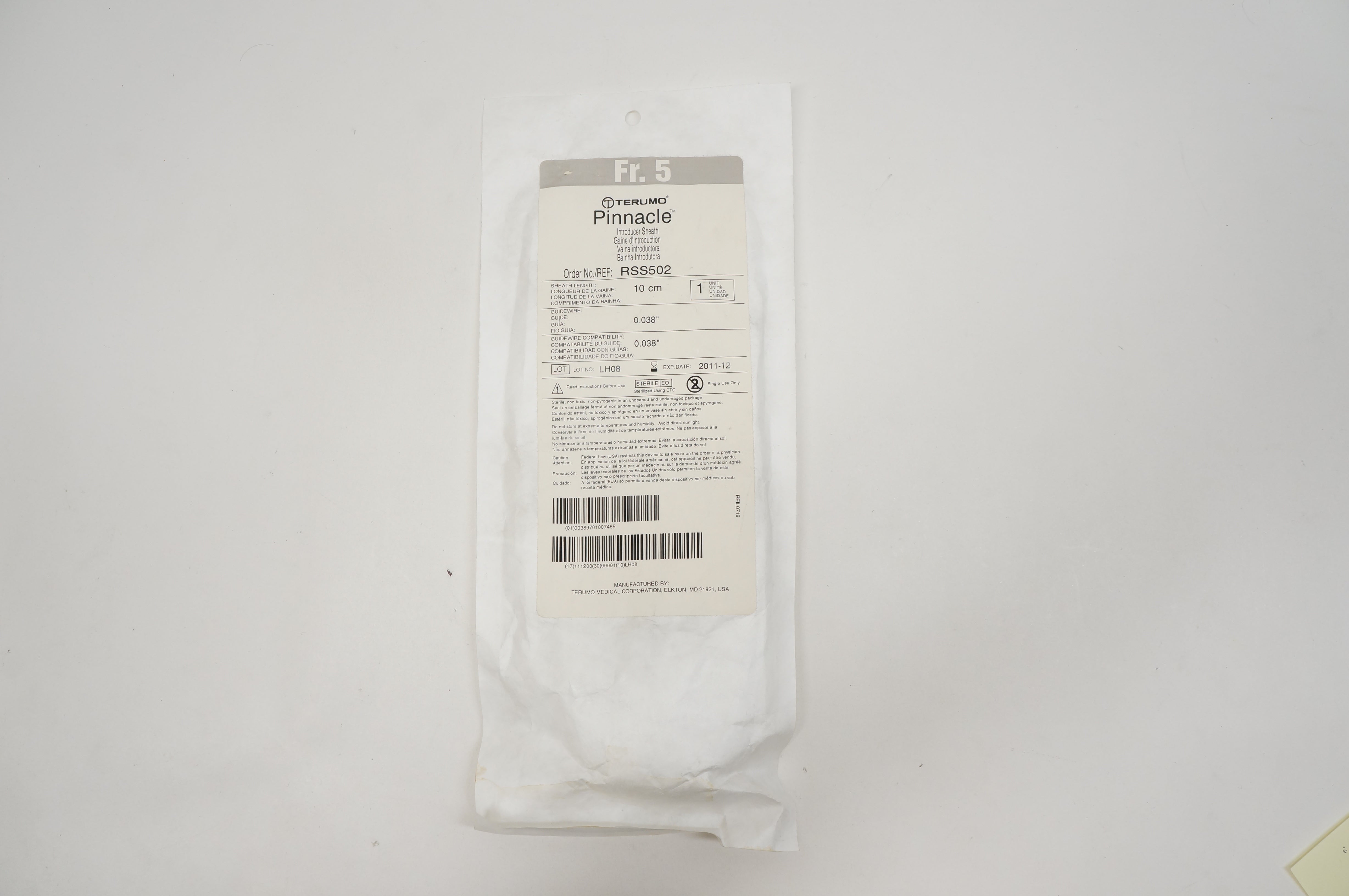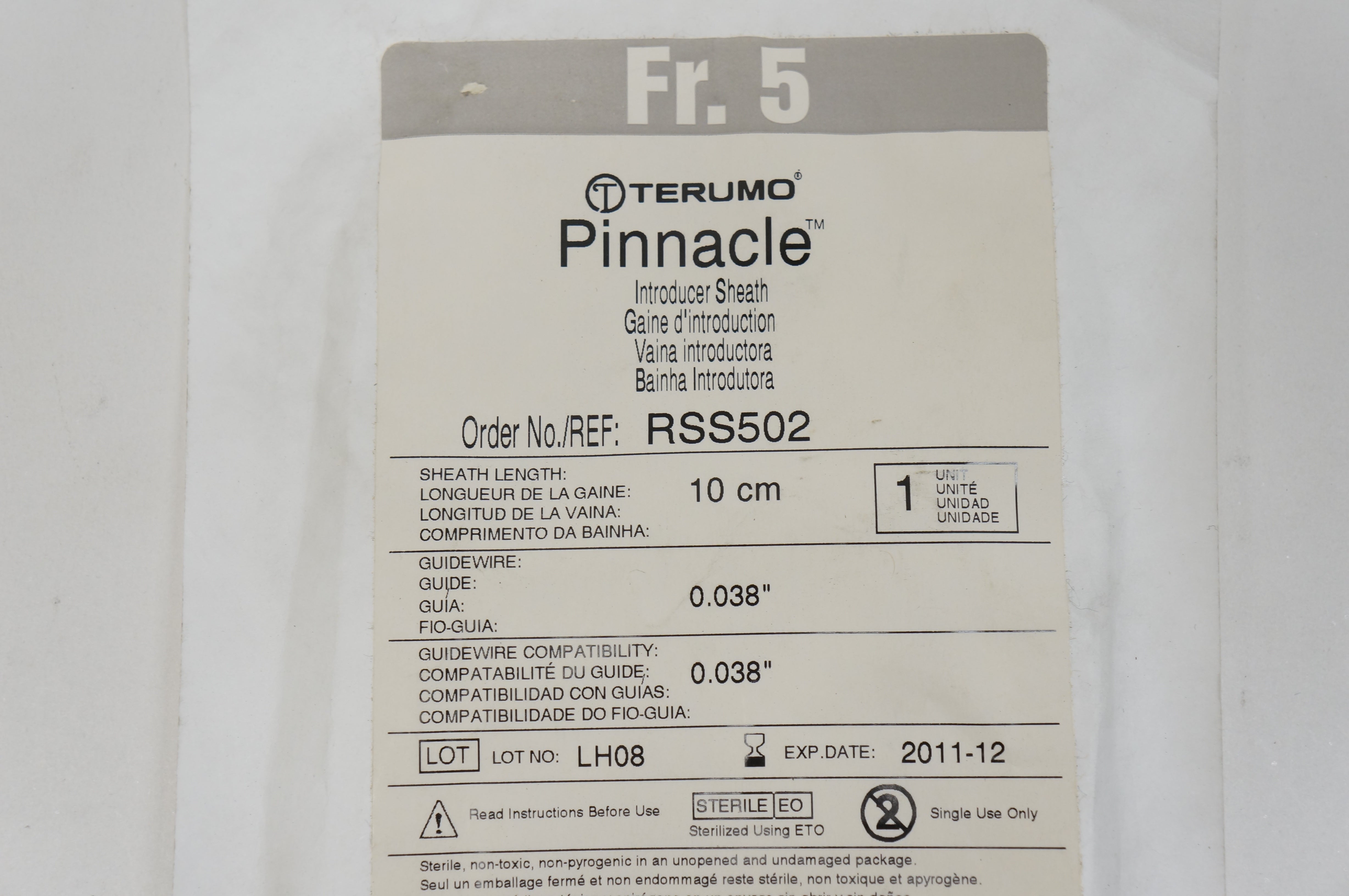 - Terumo RSS502 Pinnacle Introducer Sheath 5Fr., 0.038inch x 10cm (x)