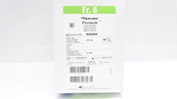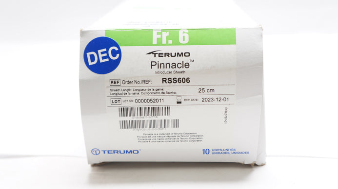 - Terumo RSS606 Pinnacle Introducer Sheath 6Fr. x 25cm x 0.038inch (x) - Box of 7
