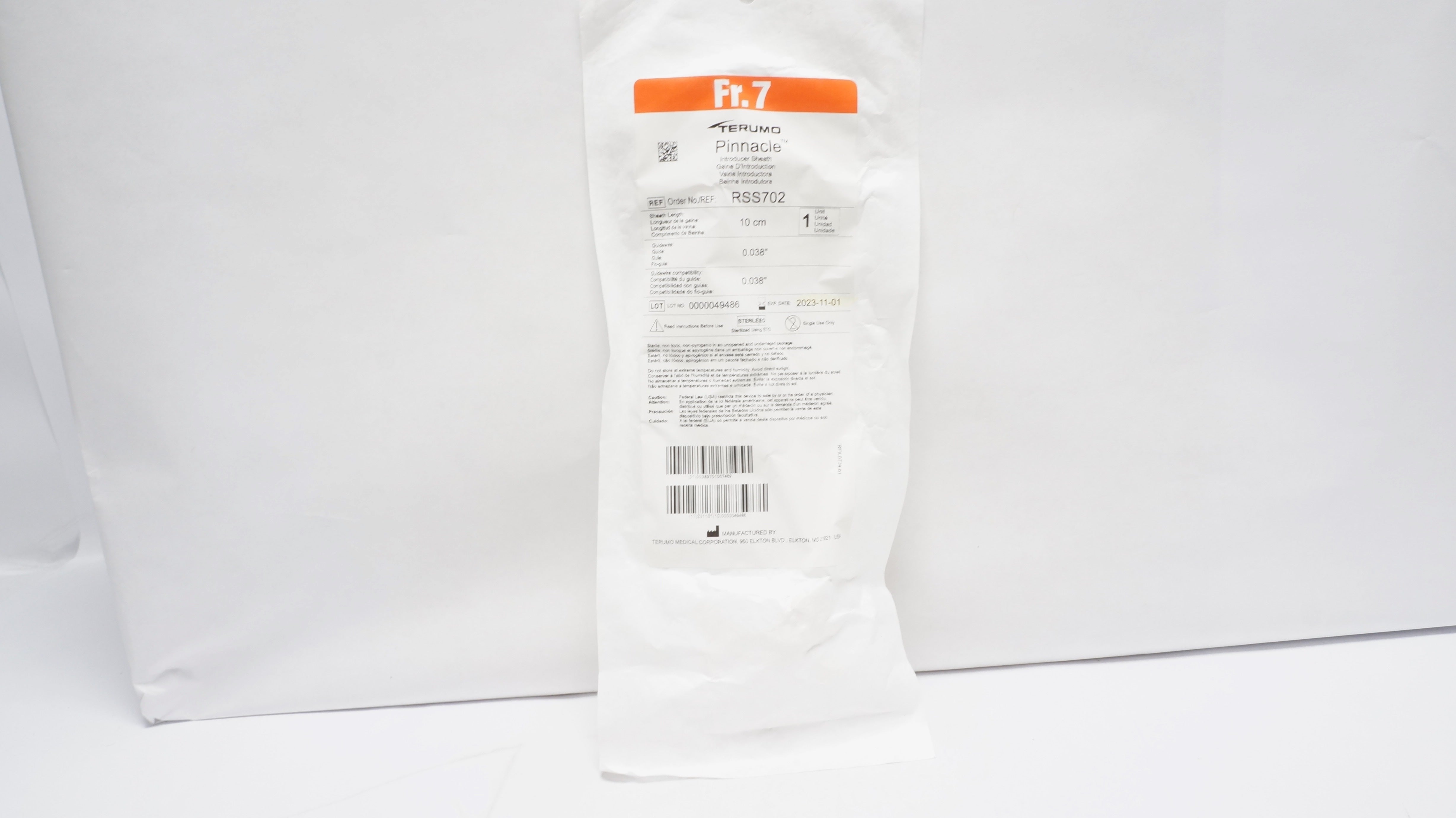 - Terumo RSS702 Pinnacle Introducer Sheath 7Fr x 10cm x .038inch x .038inch (x)