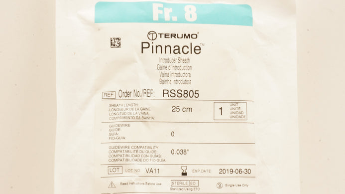 - Terumo RSS805 Pinnacle Introducer Sheath 8Fr x 25 cm x 0.038 inch (x)