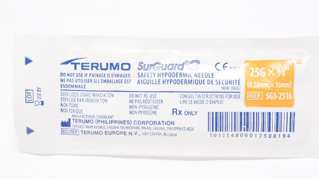 - Terumo SG3-2516 SurGuard 3 Safety Hypodermic Ndle 25G x 5/8inch