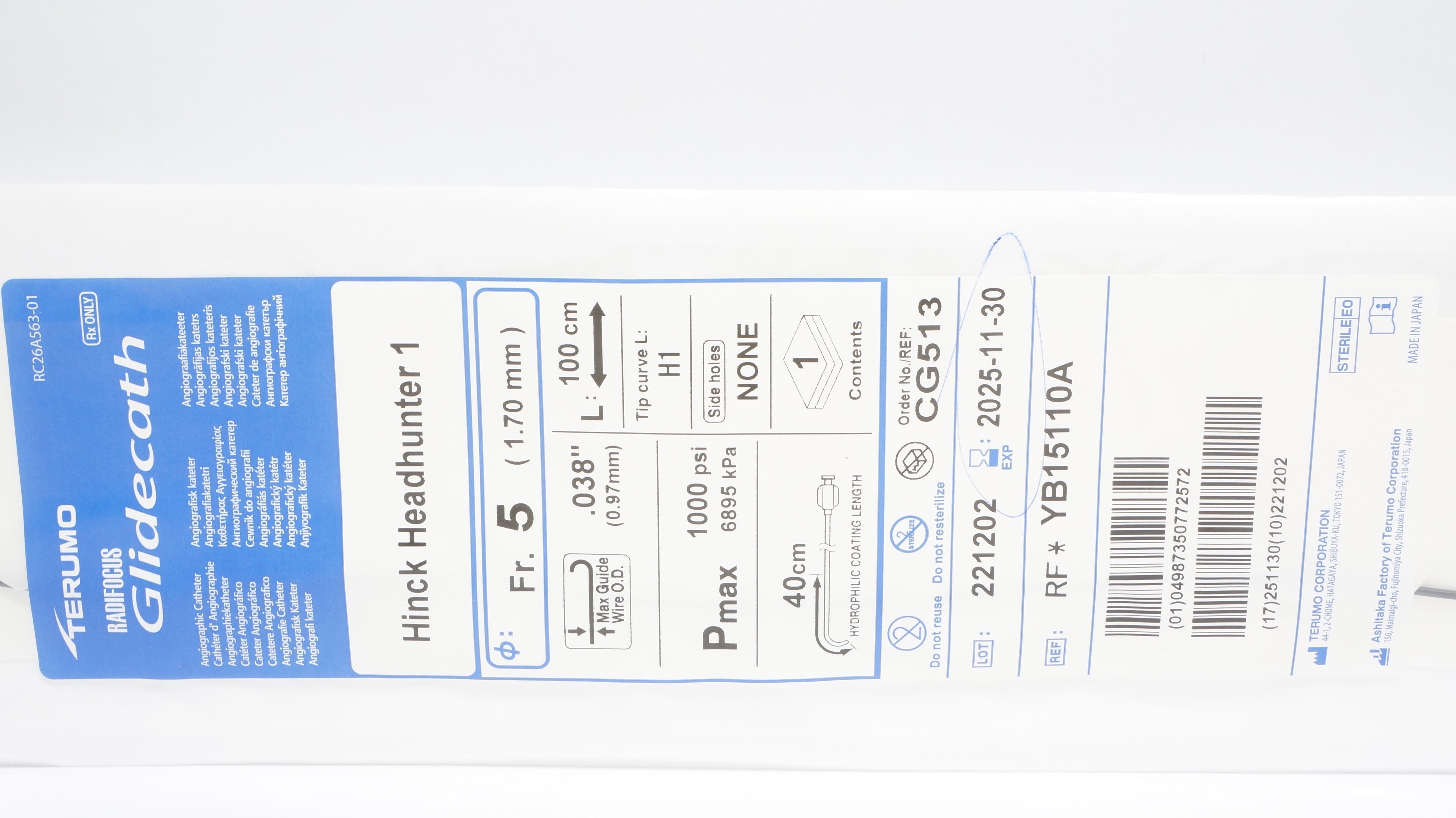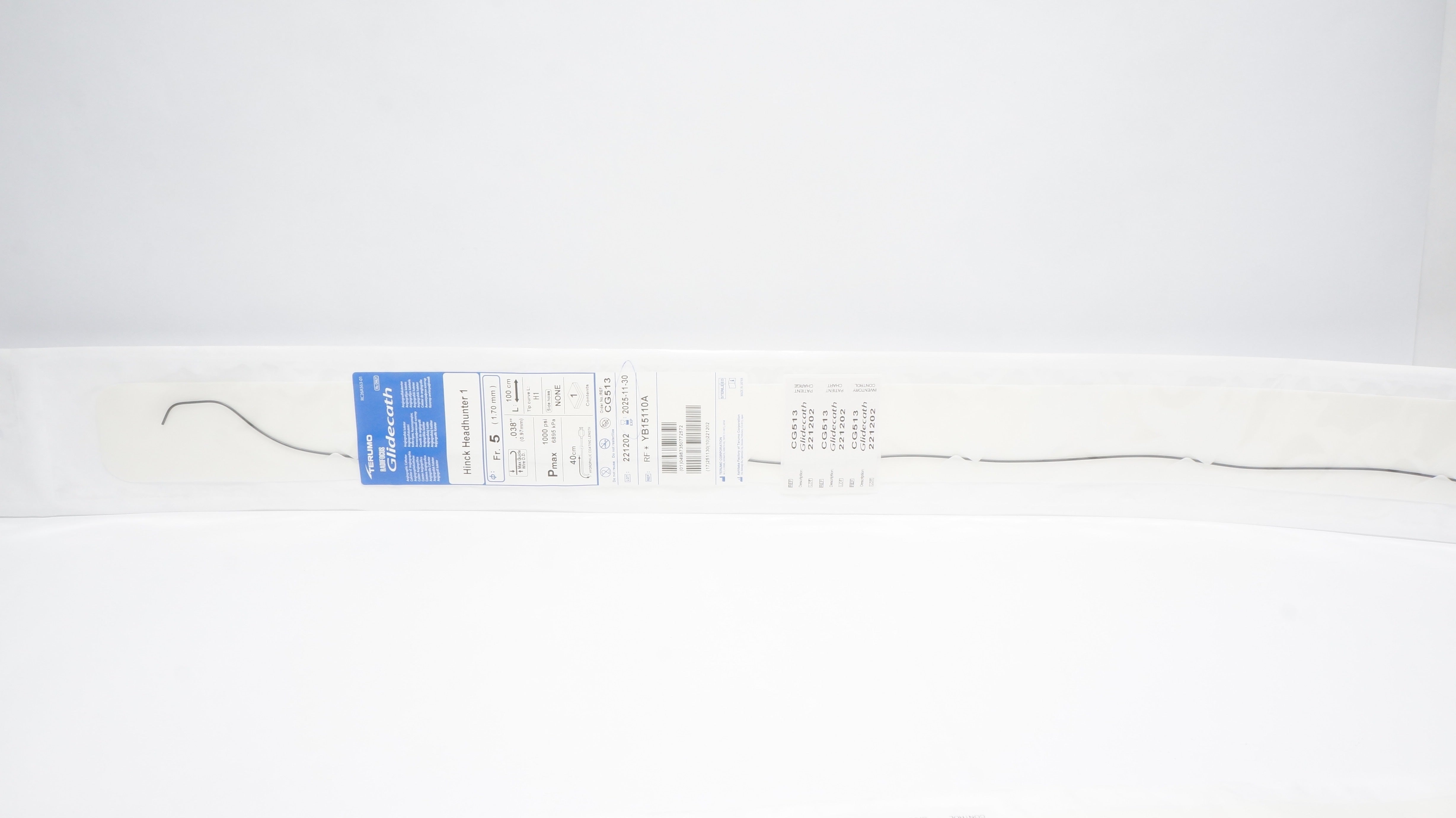 - Terumo YB15110A Radifocus Glidecath Angiographic Cath. 5Fr x 100cm x 0.038in (x)
