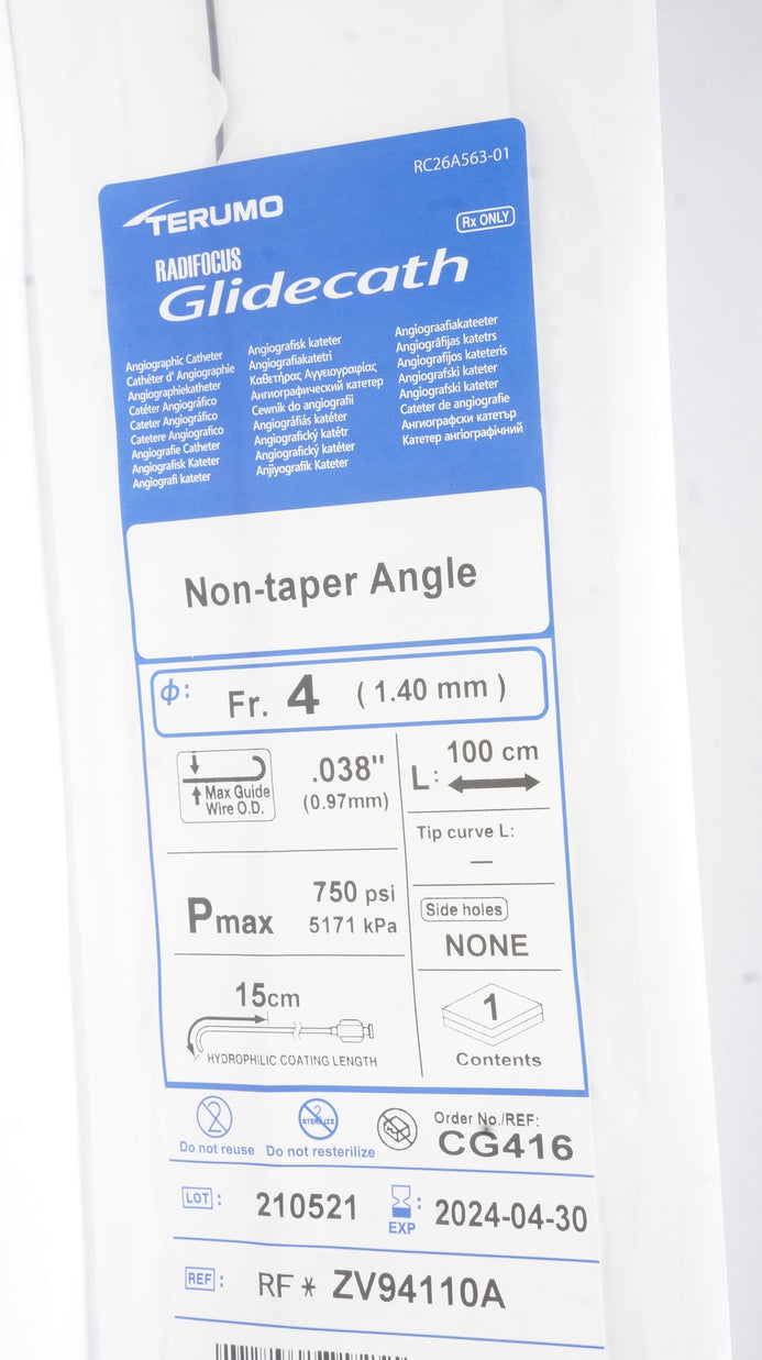- Terumo ZV94110A Radifocus Glidecath Angiographic Cath. 4Fr. x 0.038inch (x)