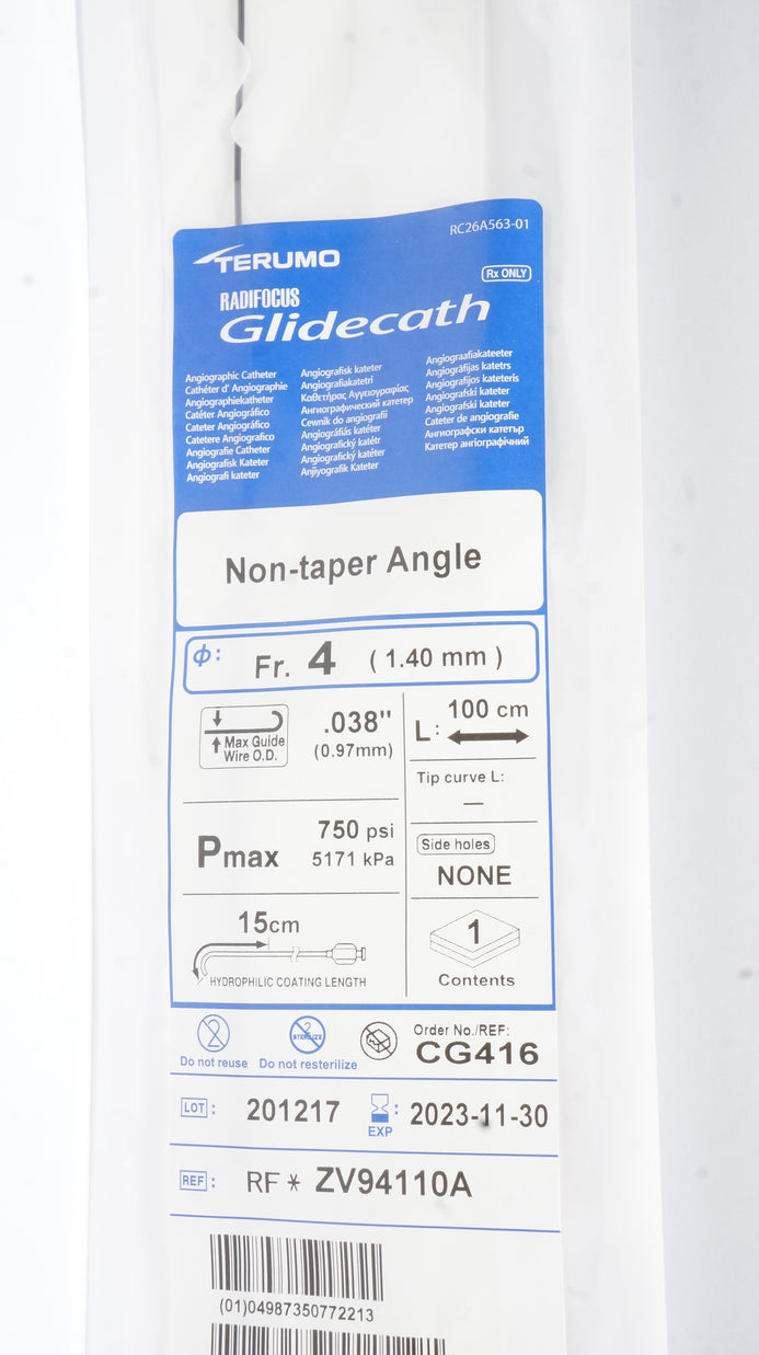 - Terumo ZV94110A Radifocus Glidecath Angiographic Cath. 4Fr. x 0.038inch (x)