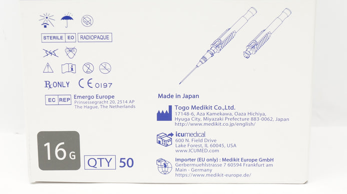 - Togo Medikit SP120-16-31T Supercath 5 Safety I.V. Cath.16G x 1-1/4in - Box of 27