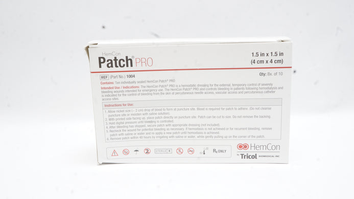 - Tricol Biomedical 1004 HemCon Patch Pro 1.5inch x 1.5inch - Box of 4