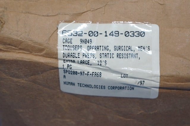 Iii part name assigned by controlling agency: trousers operating surgical mens dp static resistant x-large 12s
