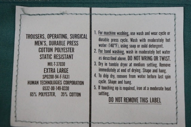 Iii part name assigned by controlling agency: trousers operating surgical mens dp static resistant x-large 12s