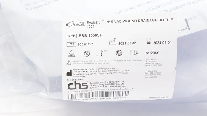 - UreSil ESB-1000SP Evolution Pre-Vac Wound Drainage Bottle, 1000mL (x)