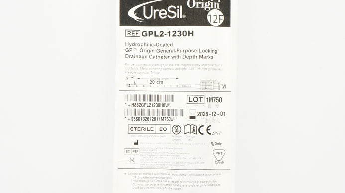 - UreSil GPL2-1230H Origin 12F Hydrophilic-Coated Locking Drainage Cath. W/Marks