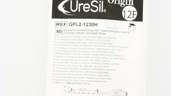 - UreSil GPL2-1230H Origin 12F Hydrophilic-Coated Locking Drainage Cath. W/Marks