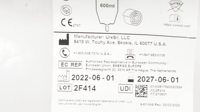 - UreSil TC600 Optimus Gravity Drainage Bag 600ml with 20inch Inlet Tube
