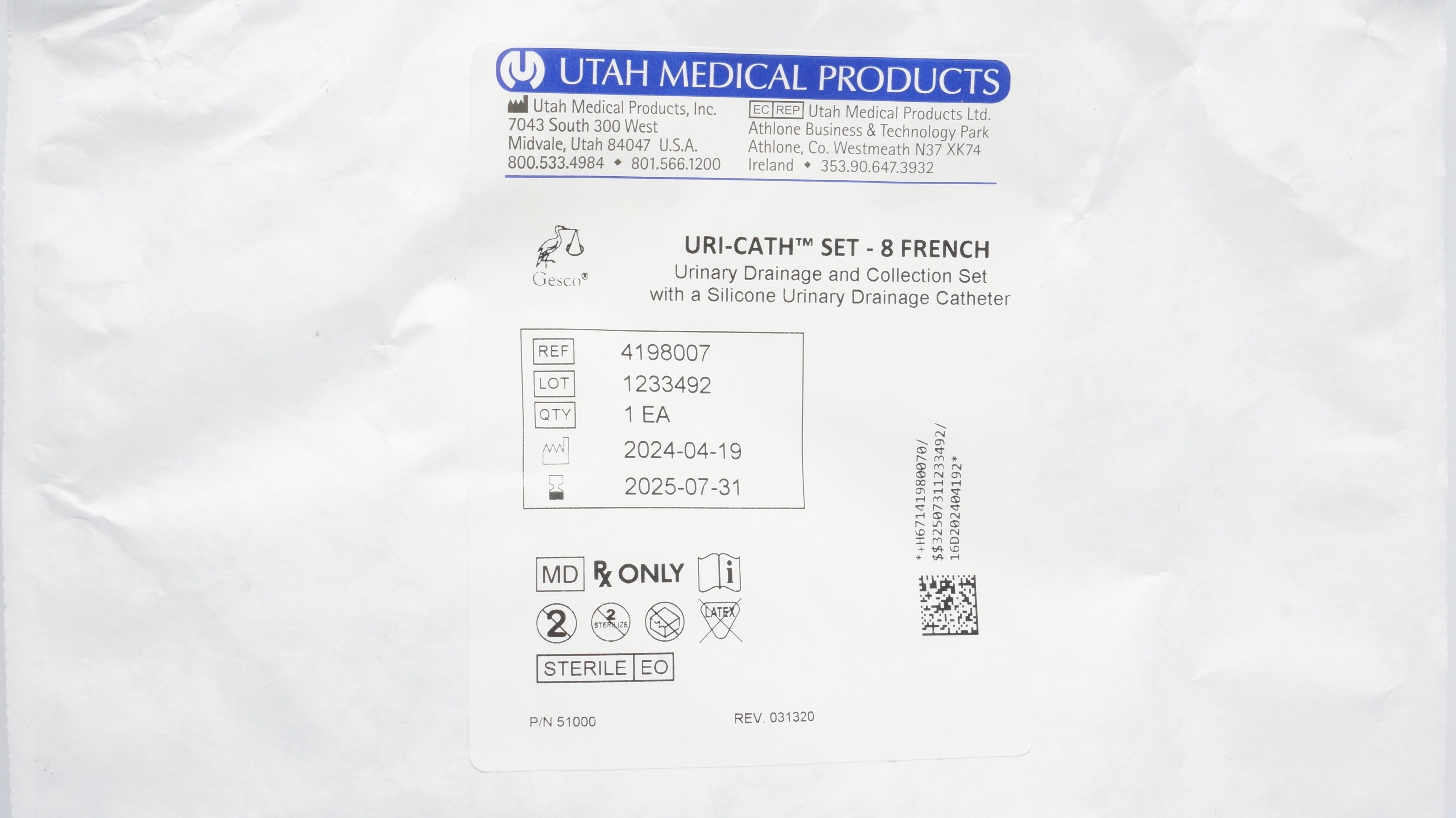 - Utah Medical 4198007 URI-Cath Set- 8Fr Urinary Drainage and Collection Set (x)