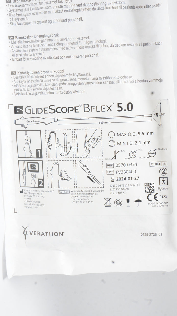 - Verathon 0570-0374 GlideScope BFlex 5.0 Bronchoscope O.D. 5.5m x I.D. 2.1mm (x)