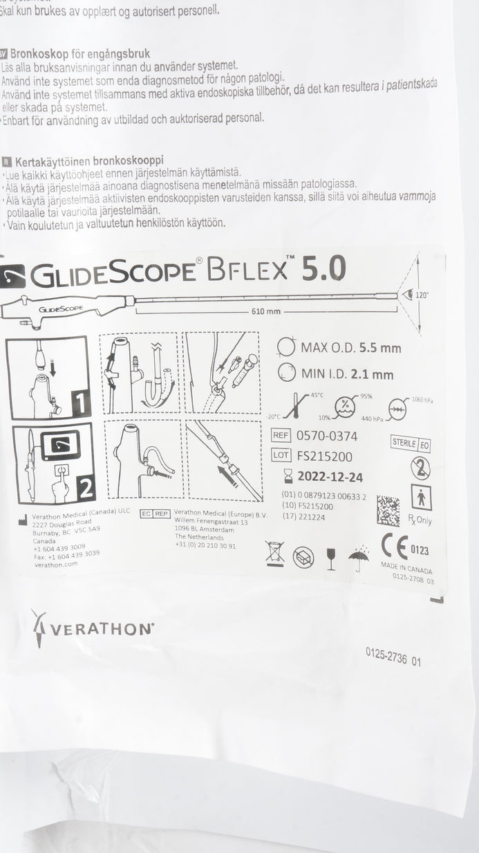 - Verathon 0570-0374 GlideScope BFlex Bronchoscope 5.0 O.D. 5.5m x I.D. 2.1mm (x)