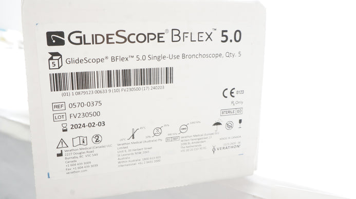 - Verathon 0570-0375 GlideScope Bflex 5.0 Single-Use Bronchoscope (x) - Box of 4