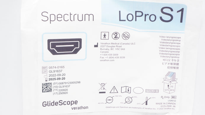 - Verathon 0574-0165 GlideScope Spectrum LoPro S1 Video Laryngoscope (x)