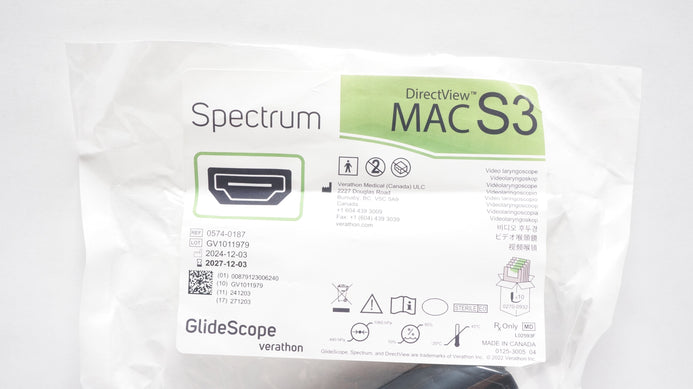 - Verathon 0574-0187 GlideScope Spectrum Video Laryngoscope, MAC S3