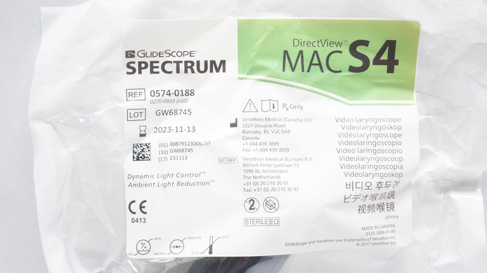 - Verathon 0574-0188 Glide Scope Spectrum Video Laryngoscope MAC S4 (x)