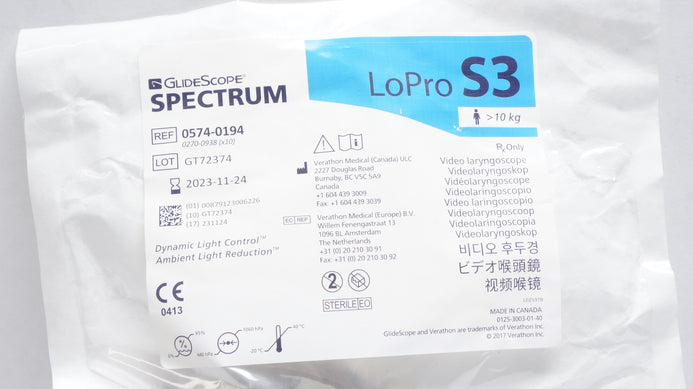 - Verathon 0574-0194 GlideScope Spectrum Video Laryngoscope LoPro S3 >10 kg (x)