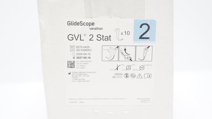 - Verathon Medical 0270-0429 Glide Scope GVL 2Stat Video Laryngoscope - Box of 10