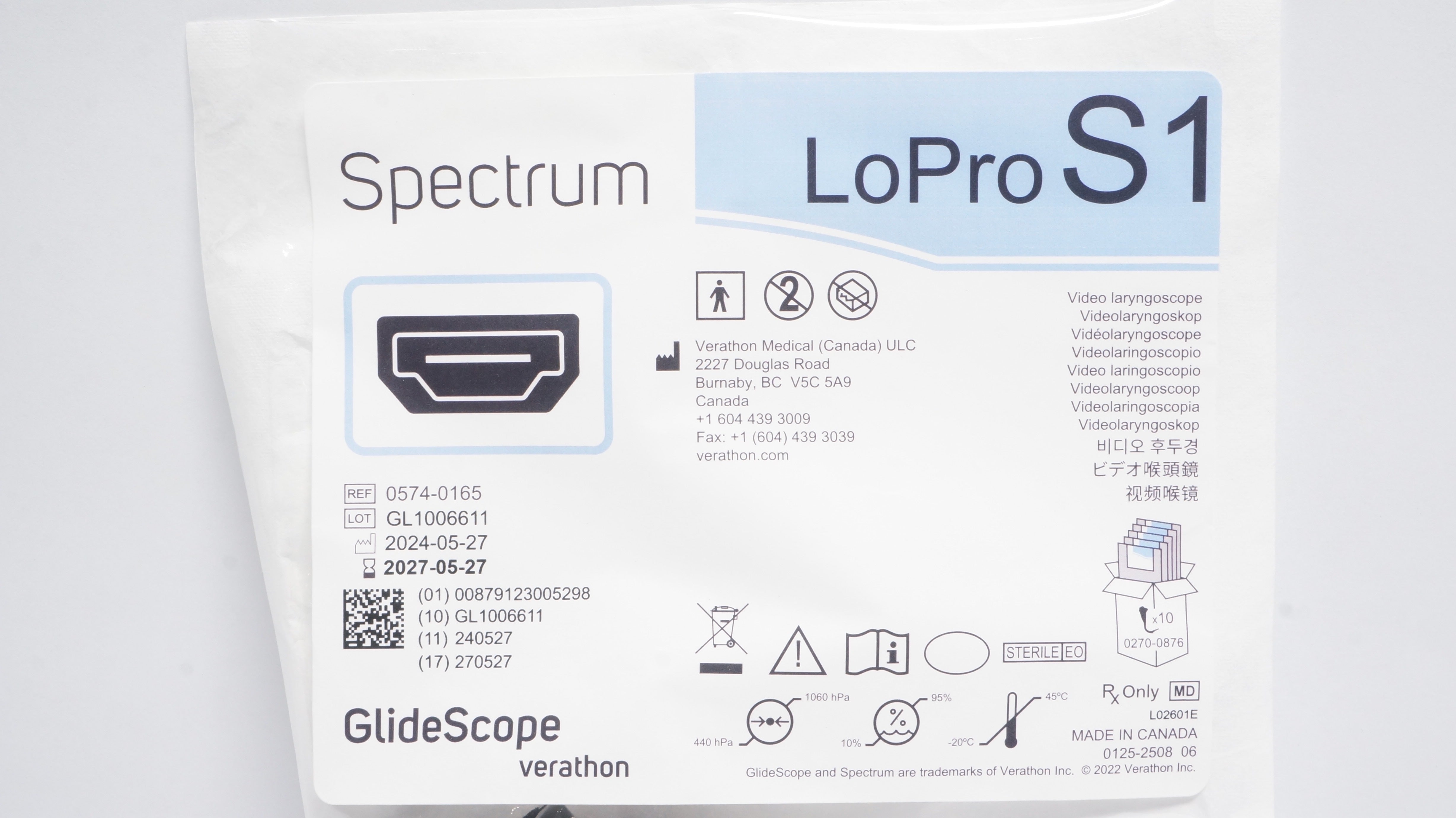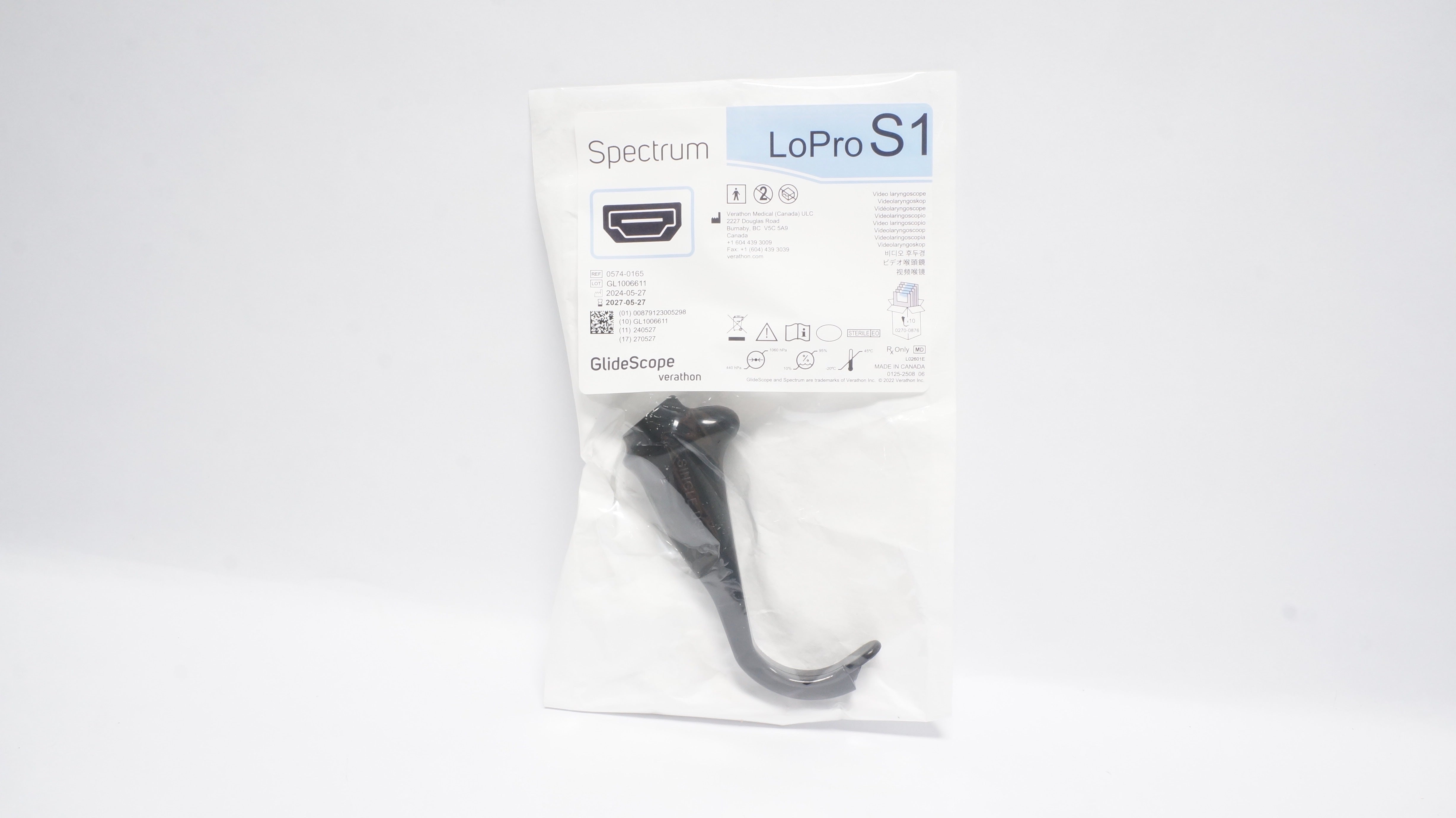 - Verathon Medical 0574-0165 GlideScope Spectrum Video Laryngoscope, LoPro S1