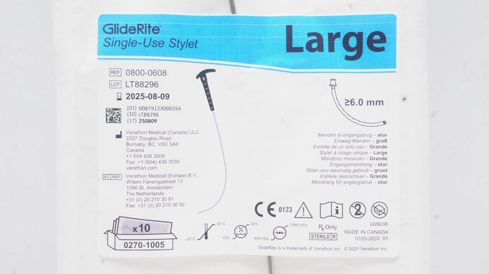 - Verathon Medical 0800-0608 GlideRite Single Use Stylet, Large ≥6.0mm