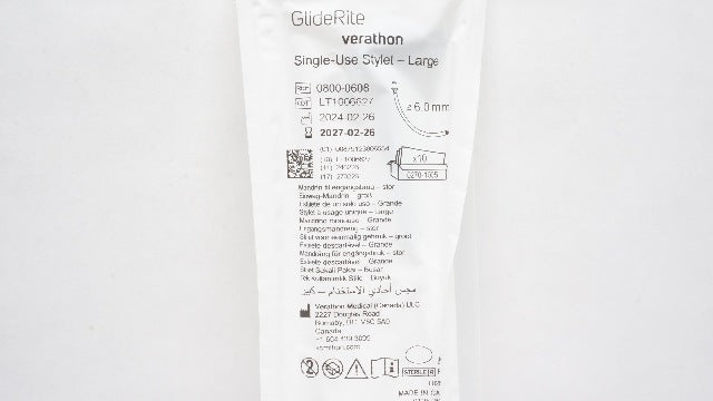 - Verathon Medical 0800-0608 GlideRite Single Use Stylet, Large ≥6.0mm